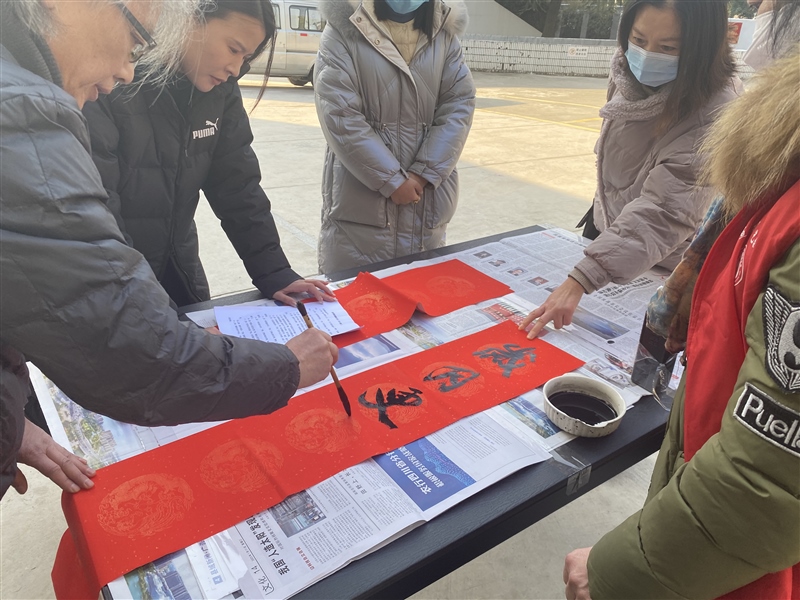 走進(jìn)社區(qū)送祝福。參與聯(lián)點(diǎn)共建昭亭社區(qū)“我們的節(jié)日·春節(jié)”新時(shí)代文明實(shí)踐志愿服務(wù)活動(dòng),以送春聯(lián)形式為社區(qū)居民送上新春祝福;顒(dòng)現(xiàn)場(chǎng),志愿者們忙前忙后傳遞紙墨,書法家們?cè)谝粡垙埣t紙上盡情地?fù)]毫潑墨,一個(gè)多小時(shí)的時(shí)間,書寫春聯(lián)等上百副。一副副春聯(lián)給社區(qū)居民們送上了新春的祝福,一張張福字更是讓大家感受到濃濃的傳統(tǒng)年味。