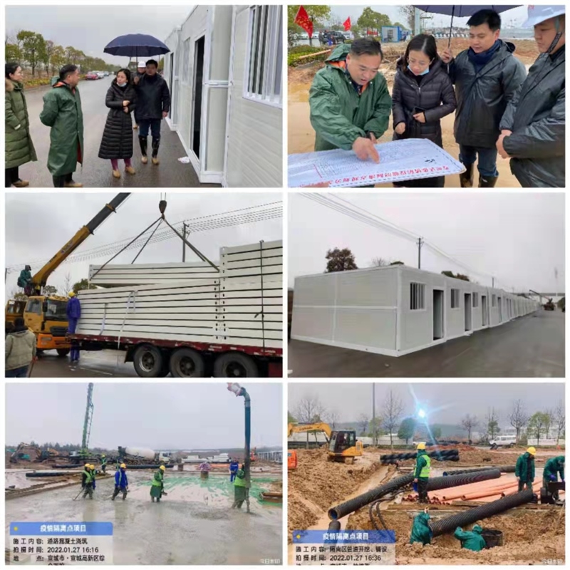 1月27日下午,宣州區(qū)政府副區(qū)長范瀟瀟到疫情防控臨時隔離點施工現(xiàn)場,查看工程施工進展情況,并充分肯定了項目施工進展速度。截止晚上18:00,疫情防控臨時隔離點項目集裝箱板房材料到場180多套,完成160套集裝箱板房拼裝。混凝土道路、雨污水管道和污水處理設(shè)施同步進行。面對即將到來的低溫雨雪冰凍天氣,區(qū)國資集團積極組織協(xié)調(diào)各項施工安排,施工人員全體上下團結(jié)一心,以堅決態(tài)度克服難關(guān),全力推進,高質(zhì)量完成項目建設(shè)。