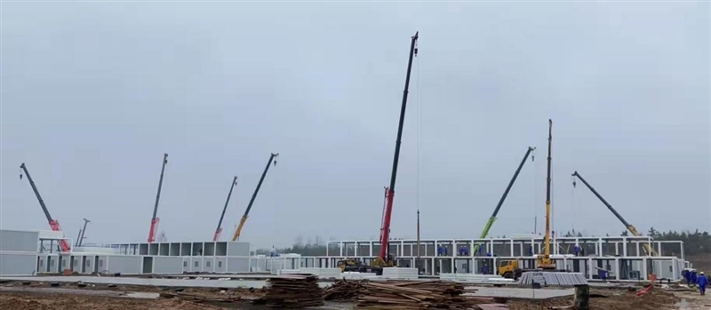 截至2月11日,隔離點項目準備區(qū)折疊房安裝完成,折疊房室內(nèi)家具、空調(diào)、熱水器、淋浴房、水電正在有序安裝中;隔離區(qū)板房室外電力電纜井砌筑、緩沖區(qū)板房已安裝完成;污水處理設備正在安裝中,室外走道支模和路燈線路在準備中。