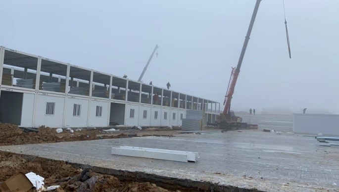 項(xiàng)目現(xiàn)場,房屋班組持續(xù)推進(jìn)隔離區(qū)板房安裝,空調(diào)、熱水、家具班組配合完成室內(nèi)部分設(shè)施安裝,室外附屬班組利用晴好天氣搶建室外走道、圍墻,搶鋪綠化草皮……各功能班組交叉作業(yè),趕進(jìn)度、搶工期,全面梳理每天工作內(nèi)容,嚴(yán)把施工質(zhì)量、嚴(yán)管作業(yè)安全、嚴(yán)控施工進(jìn)度,為完成目標(biāo)任務(wù)而不懈努力。他們始終堅(jiān)守在自己的陣地上,多少個(gè)日夜里,他們忘記了寒冷、忘記了辛苦,甚至忘記了與家人團(tuán)聚的日子,只為完成肩上的使命,確保隔離點(diǎn)按時(shí)完工。
