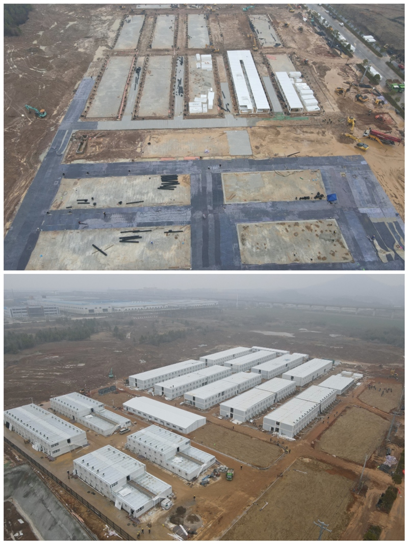 自1月21日宣州區(qū)疫情防控指揮部緊急部署由區(qū)國資集團承建宣州區(qū)疫情防控臨時隔離點項目始,集團即刻投入到緊張有序的搶建工作中。冬季施工難度相當(dāng)大,項目更是遭遇持續(xù)降雨、二次大雪和連續(xù)降溫,氣候條件十分不利。然而國資集團不畏困難,不失時機,抓住一切機會搶工程,不論白天、黑夜、刮風(fēng)還是下雨,始終緊抓建設(shè)不放松,克服持續(xù)陰雨天氣,大干6個晝夜,突擊144小時連續(xù)作業(yè),完成25000平方米混凝土澆筑。更是在春節(jié)期間不停工,不斷檔,頂著暴風(fēng)雪、克服春運帶來的采購、人工、交通等一切不利因素,在元宵節(jié)前完成準(zhǔn)備區(qū)188套、隔離區(qū)744套打包房吊裝工作。