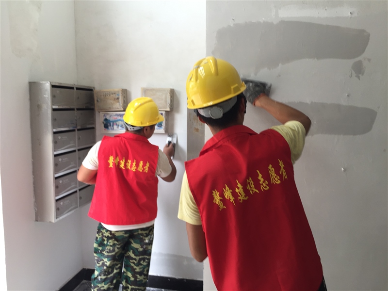 8月26日-8月30日,志愿服務(wù)隊來到鉆石鑫城小區(qū)開展小區(qū)清潔志愿服務(wù)活動。隊員們對小區(qū)單元樓道墻面上、信箱上的涂鴉“牛皮癬”廣告進(jìn)行清理,給墻面重新刮膩子、刷涂料,為居民營造良好的生活環(huán)境。